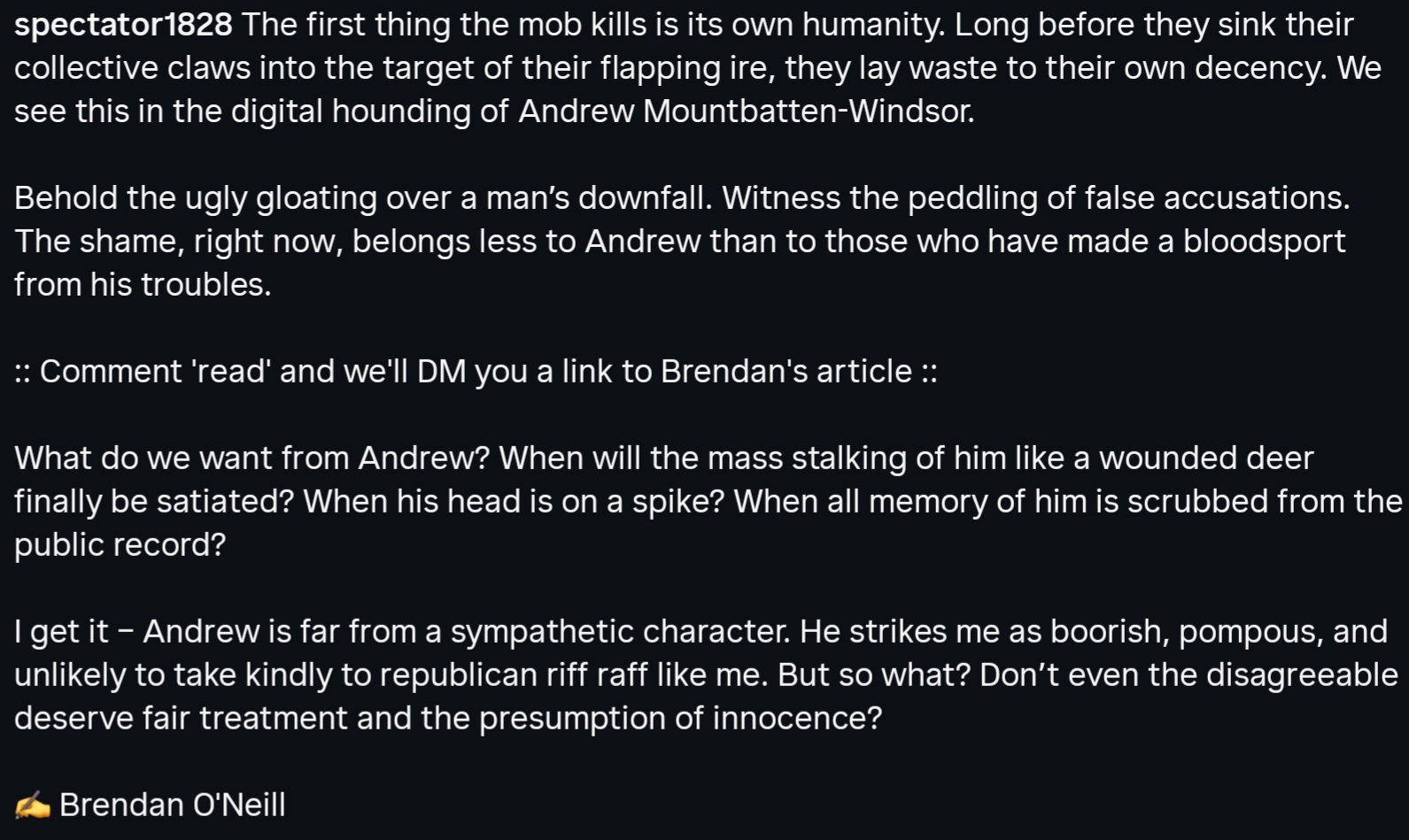 I’m sure you’ll all agree with Brendan O”Neill this time: